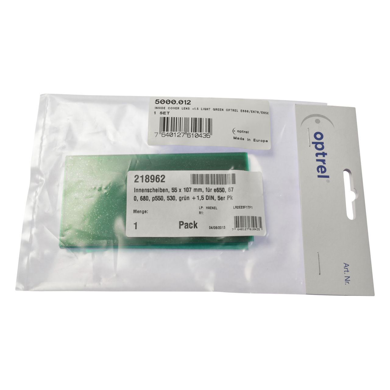 Innenscheiben, 51 x 107 x 1 mm, grün +1,5 DIN, 5er Pack, für OSE/OSC/e640