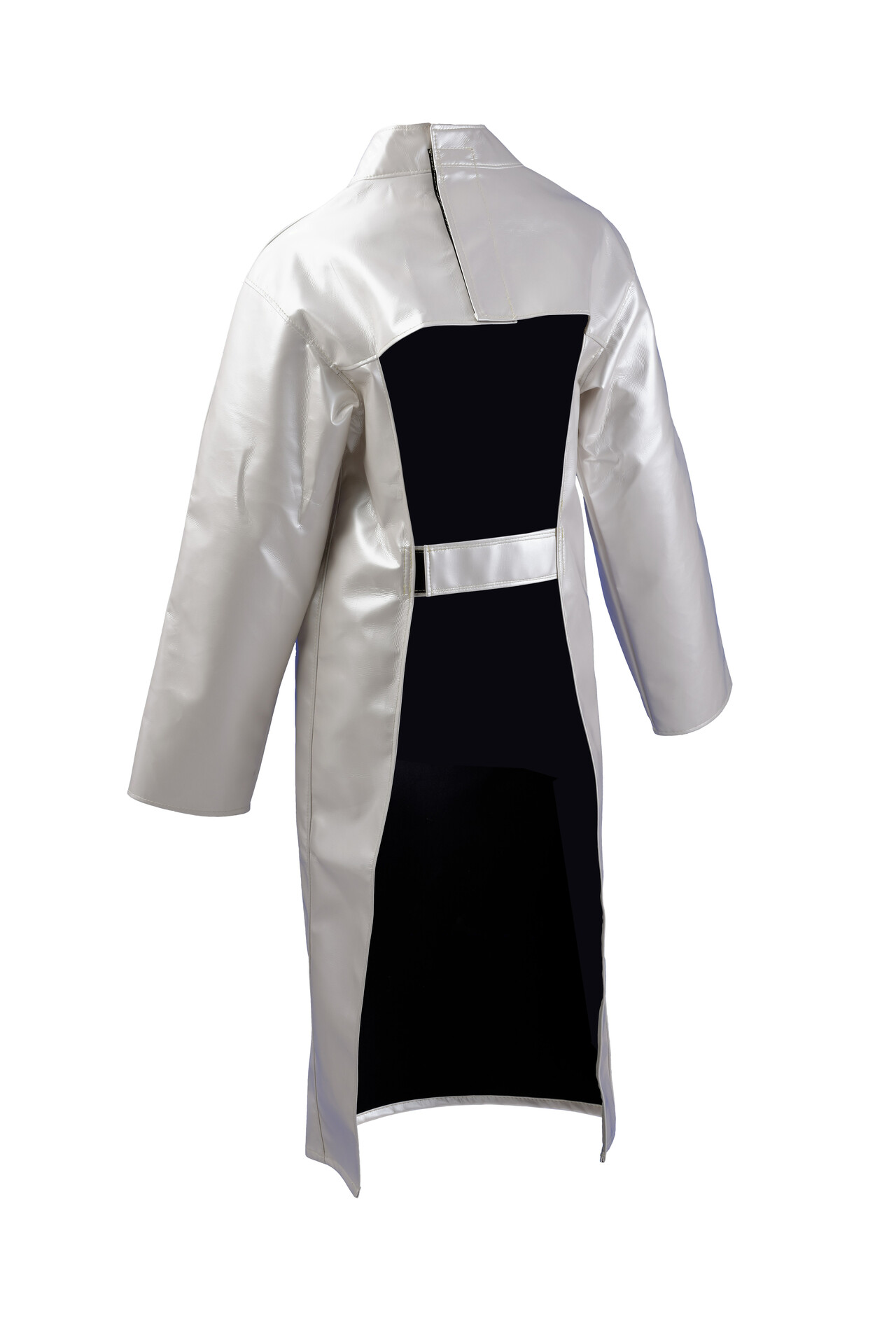 - Hoher Stehkragen mit Klettverschluss – gezielter Schutz des Halsbereichs, ideal in Kombination mit Laserschutzhelm/Maske